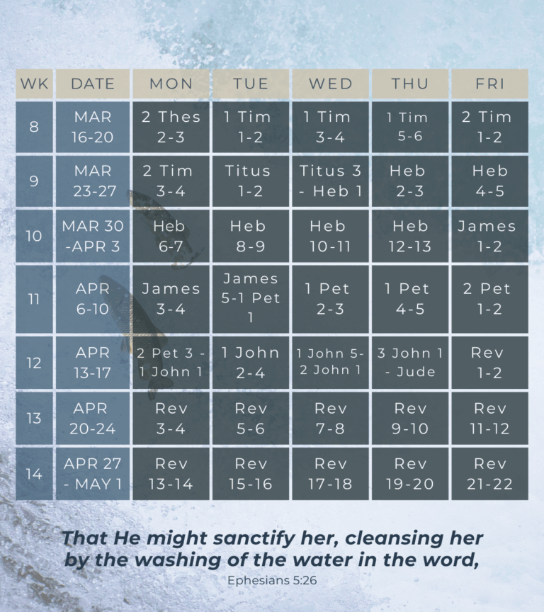 This semester, we want to develop the habit of spending time in the word and listening to His speaking. The challenge is to read the Bible consistently. Below is a calendar to read the Gospel of Matthew to the book of Acts this semester!
